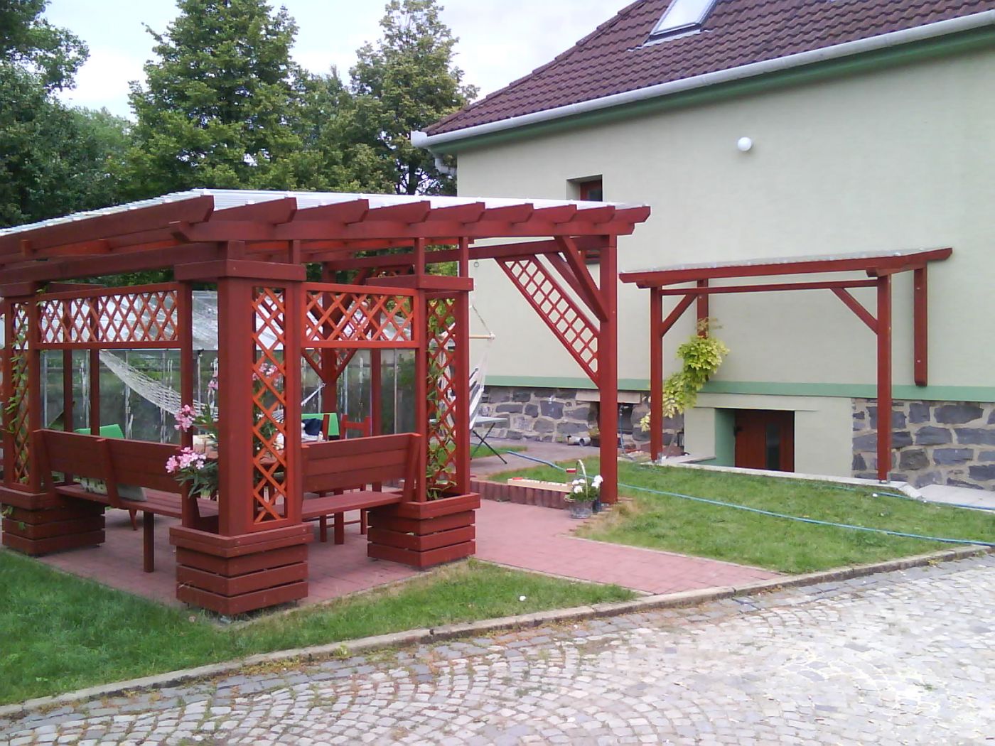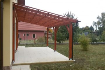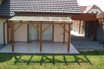 You can use the pergola in the rain and on cooler days, but will it also protect you from the summer sun? We produce all-wood pergolas, in combination with metal, but also with glass or integrated shading. We are no strangers to garden houses either. And if you need to build a parking space in front of your house, we will be happy to help you with that too.