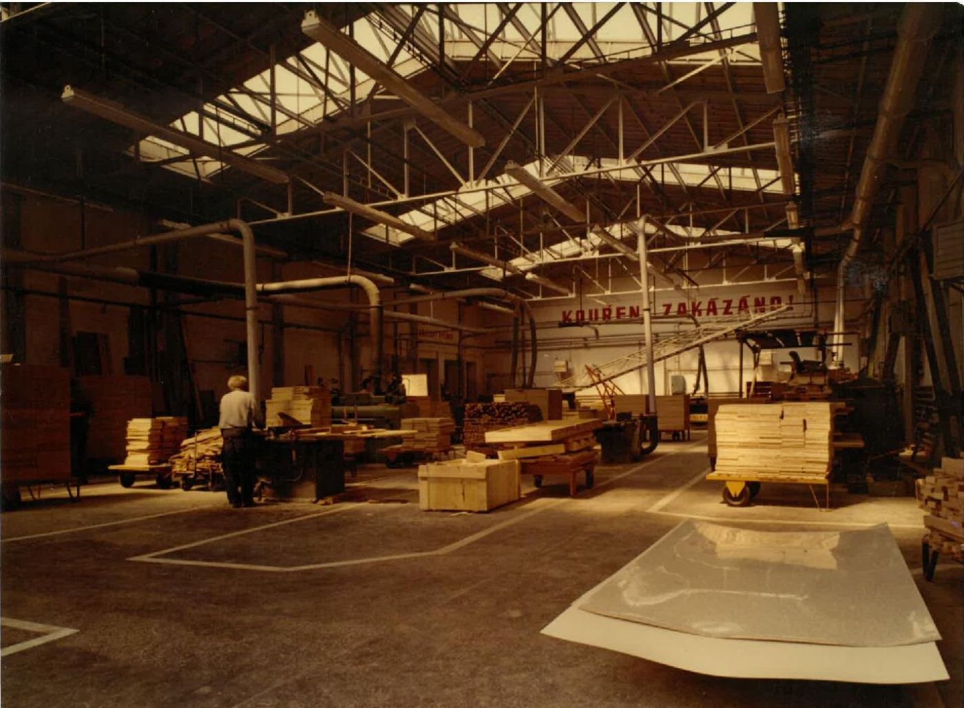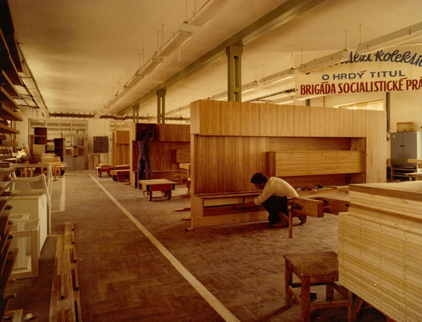 DŘEVODÍLO was founded as a buying and selling cooperative of Rousínov joiners on the 28th of August 1945. It was then listed in the Commercial Register on the 21st of May 1951. The company managed to successfully build on the rich furniture tradition of the Rousínov region and gradually became one of the most important furniture manufacturers in Czechoslovakia and Central Europe. It had plants in Slavkov u Brna, Bučovice, Vyškov and Rousínov, and in 1971 it managed to acquire new premises for the Rousínov plant by purchasing the premises directly from Spojené uměleckoprůmyslové závody (the United Arts and Crafts Works). At that time there was such a demand for furniture from DŘEVODÍLO that the waiting list for delivery could be as long as 3 years.