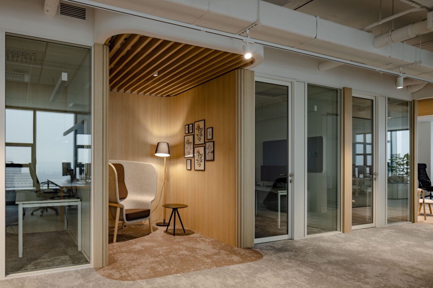 Another practical and cosy feature are acoustic booths, providing privacy for phone calls or small meetings.