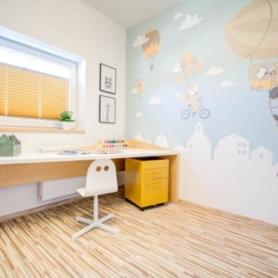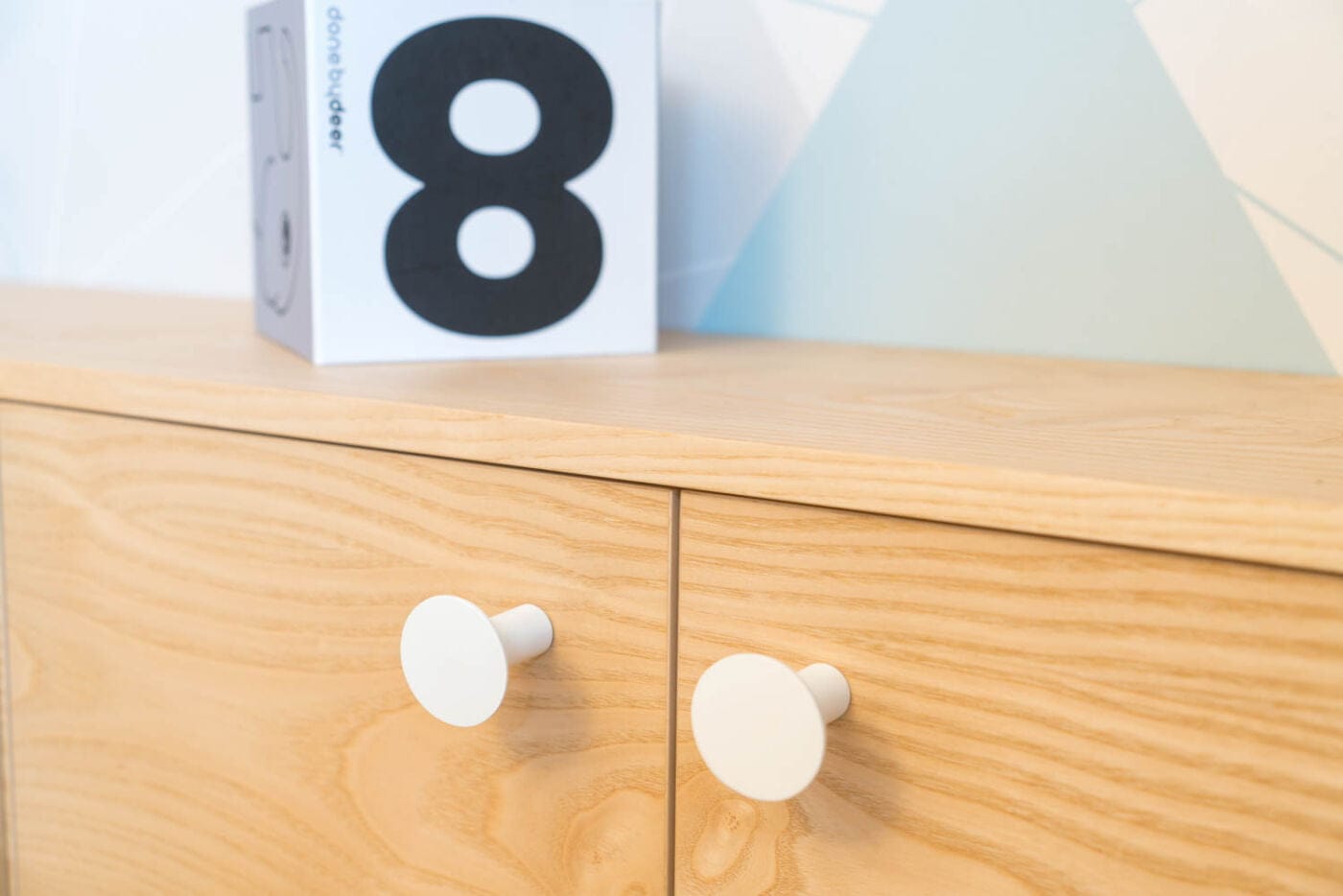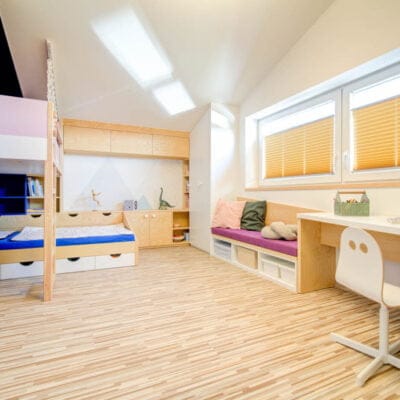 In cooperation with the interior design studio ATAK design we realized a children’s room. The main material in the children’s room is ash. Ash is a distinctive material thanks to its wood structure, but thanks to its light shade it looks pleasant and cosy in the interior. It was therefore a great choice for the children’s room.