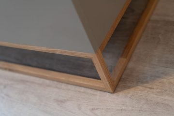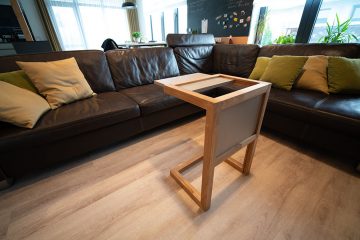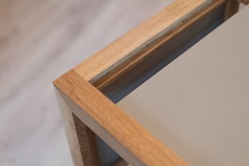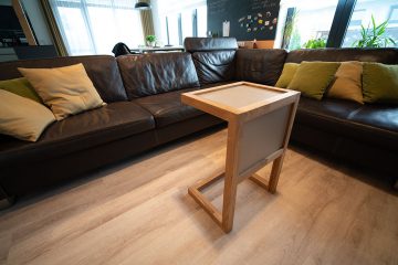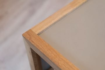 is a simple U or C-shaped table with at least 3 possible ways of use. As a classic coffee table or as a standing table that can be simply slid under the sofa. It is comfortable not only for dining but also for working. The dimensions of the table are 350 x 450 x 650 mm (height x depth x width). Solid oak construction, oil finish. 18mm LTD plates.